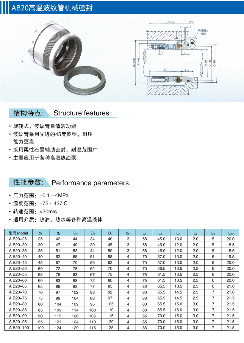 AB20高温波纹管机械密封