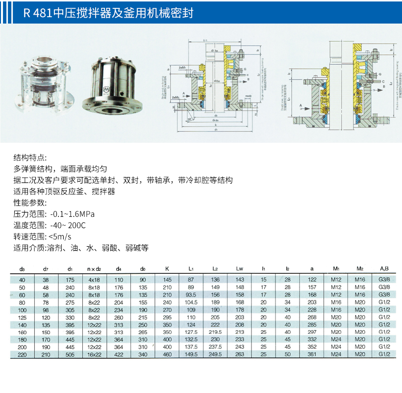 R 481中压搅拌器及釜用机械密封